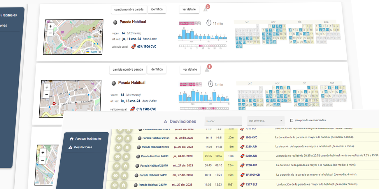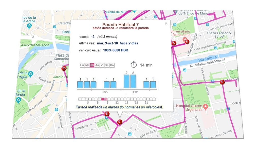 El sistema acumula y detecta las Paradas Habituales de la flota.