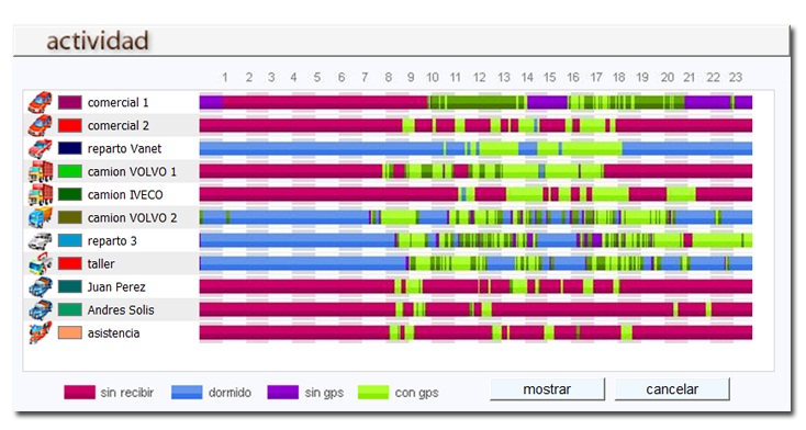 Mediante las gráficas de Actividad, se puede informar del estado de los vehículos.