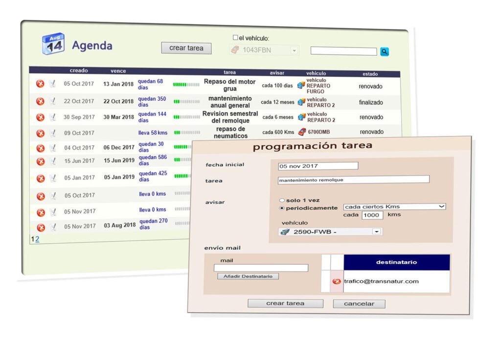 Es posible programar mantenimientos y revisiones de los vehículos.