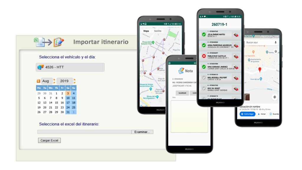 Disponiendo de los itinerarios a realizar en formato excel, es posible subirlos a la nube y que aparezcan en el móvil del conductor para que le guíe destino a destino, sin necesidad que conozca la ruta previamente.